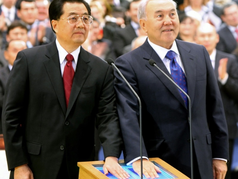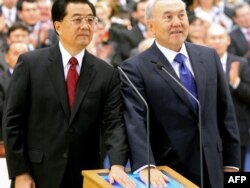Нұрсұлтан Назарбаев, Қазақстан президенті және Ху Цзиньтао, Қытай төрағасы жаңа мұнай құбырын ашу салтанатында. Астана, 12 желтоқсан 2009 жыл