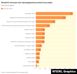 • Шетелдіктермен бірлескен 12 кәсіпорынның (БК) тең жартысының ортақ құрылтайшылары – "Росатомның" еншілестері. Ресей мемлекеттік корпорациясы Қазақстандағы 14 кен орнының бесеуінен уран өндіреді.