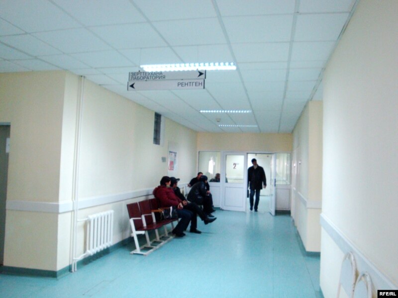 Қызылқоға аудандық ауруханасындағы кезек күтуші науқастар.
