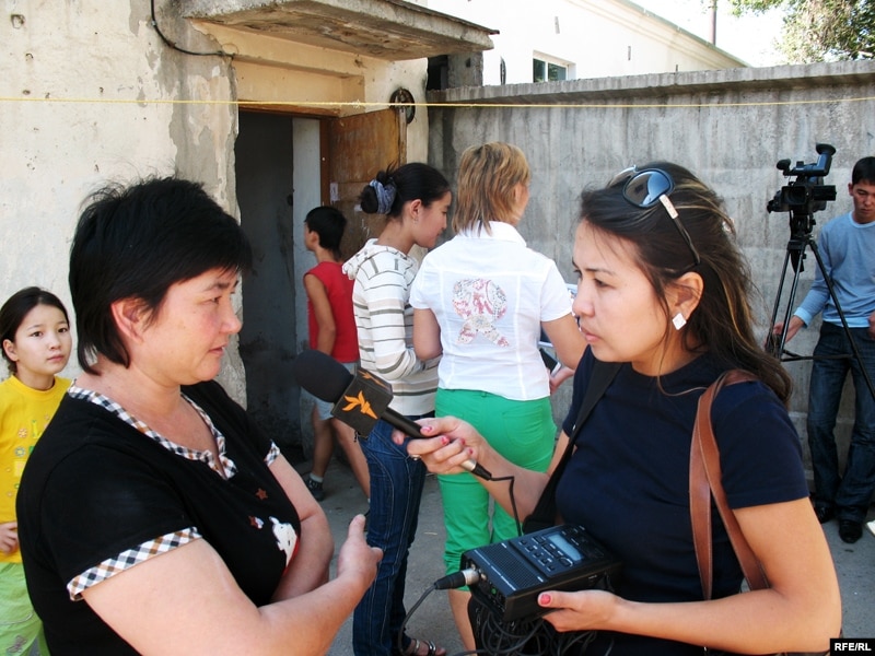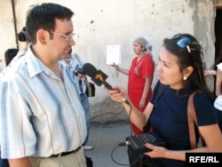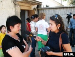 Жатақхана тұрғыны Кенже Отарова (сол): "Сот біздің сыртымыздан шешім шығарды". Алматы, 21 тамыз 2008 ж.