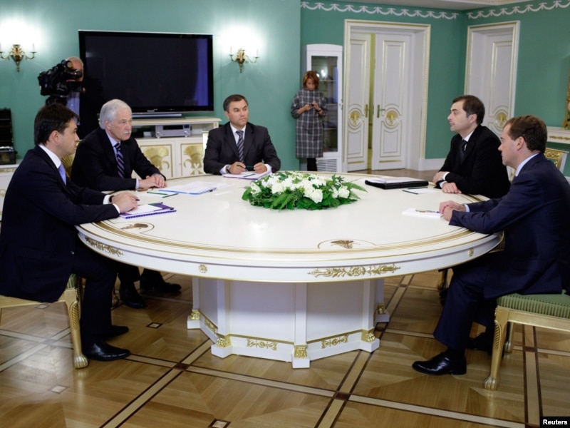 Ресей президенті Дмитрий Медведев (оң жақта) "Единая
