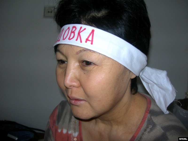 Қайыпжамал Иманғалиева ауруханадан шыққан соң аштық акциясын қайта жалғастырды. Алматы, 26 наурыз 2009 ж.