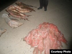 Ресейлік (Дағыстандық) браконьерлерден тәркіленген ау және заңсыз ауланған балықтар. Атырау, 31 қазан 2010 жыл.