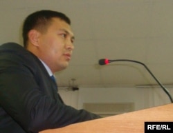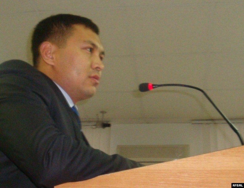 Әзиз Жұмағазиев, ішкі істер басқармасының тергеушісі сотта жауап беріп тұр. Атырау, 3 желтоқсан 2009 жыл.