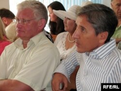 «Азат» партиясының төрағасы Болат Әбілов (оң жақта) және оның орынбасары Петр Своик әкімшілік соттың отырысында. Алматы, 21 шілде 2009 жыл.