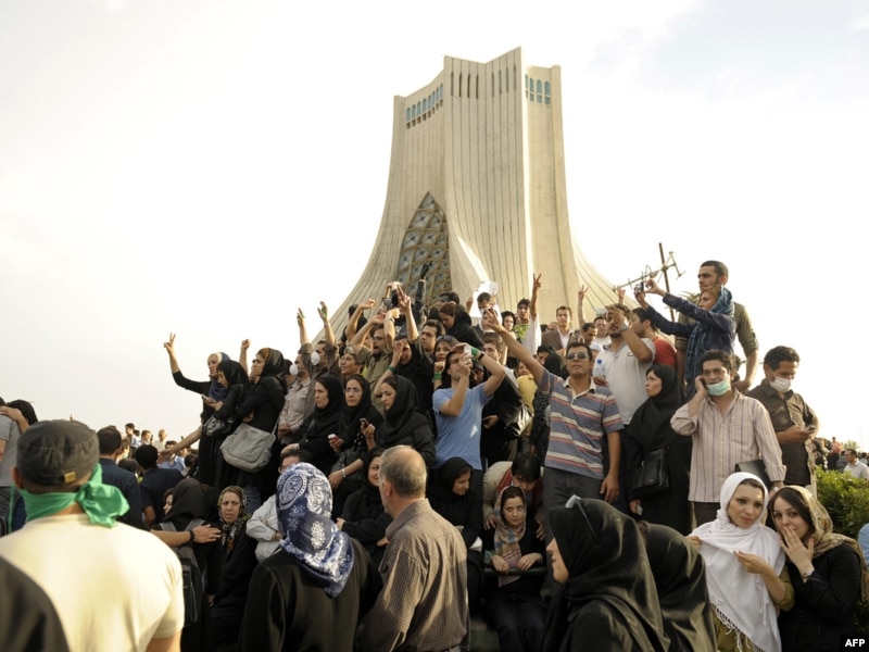 Мусавидің жақтастары оған қолдау білдіріп Теһрандағы Азаттық алаңына жиналды. 15 маусым 2009 ж.