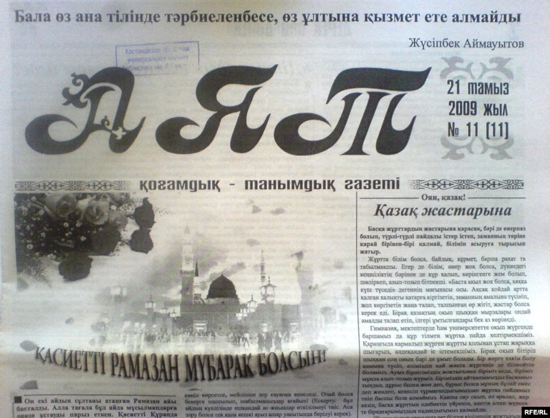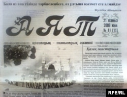 Лисаков қаласында шығатын «Аят» қоғамдық-танымдық газеті. Қостанай облысы, 21 тамыз 2009 жыл.