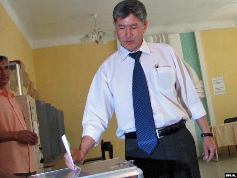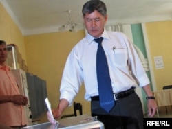 Қырғызстан президентінің сайлауына оппозициядан түскен ортақ кандидат Алмазбек Атамбаевтың дауыс беріп жатқан сәті. Бішкек, 23 шілде 2009 жыл.