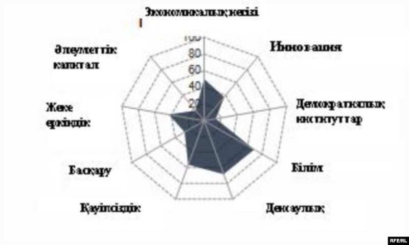 Legatum институты мемлекеттердің өркендеу индексін анықтағанда елдің экономикалық бәсекеге қабілеттілігі мен өмір сүру деңгейін қарастыратын 9 критерийдің нәтижесіне сүйенген. Олардың ішінде демократиялық құндылықтарға қатысты параметрлері Қазақстанды кері тартып тұр.