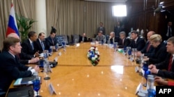 АҚШ президенті Барак Обама (сол жақтан үшінші) Ресей оппозициясының көсемдерімен кездесуде. Мәскеу, 7 шілде, 2009 жыл.