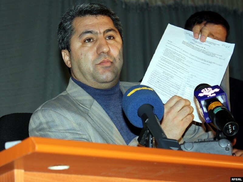 Оппозициялық Ислами жаңғыру партиясының жетекшісі Мухиддин Кабири сайлауда дауыс беру кезінде заң бұзу оқиғалары болғанын айтып тұр. Душанбе, 1 наурыз 2010 жыл.