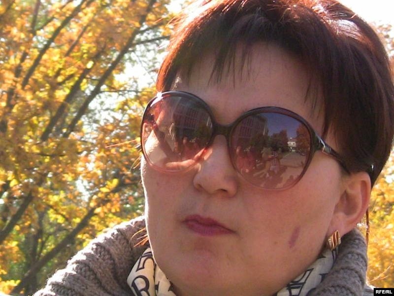 «Азат» партиясы төрағасының орынбасары Маржан Аспандиярова журналист Рамазан Есіргеповтың шағымын қарап жатқан Жамбыл облыстық сотының алдында. Тараз, 22 қазан 2009 жыл.