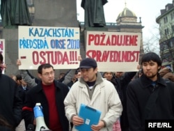 Қазақ босқындар наразылық жиынын өткізді. Прага, 2009 жылдың ақпаны