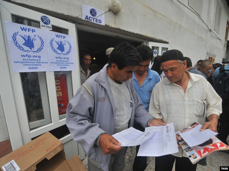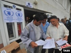 БҰҰ Азық-түлік бағдарламасы бойынша жәрдем алып жатқан Қырғызстан тұрғындары. Ош, 24 маусым 2010 ж.