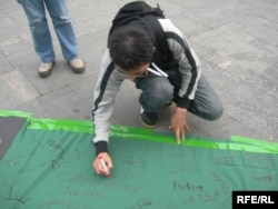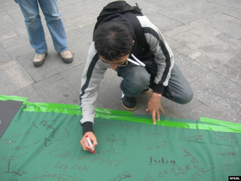 Бір күні мен иран редкциясындағылар Праганың орталығындағы Вацлав алаңында Махмуд Ахмадинежадтың екінші мәрте Иран президенті болып сайланғандығына қарсы наразылық акциясын өткізіп жатқанын көріп қалдым. Олар мені бірден таныды, акцияға қолдау көрсетіп, үн қатуымды, дәлірек айтқанда алаңға төселген жасыл түсті материалға қол қоюымды сұрады. Әріптестеріме қолдау көрсеттім. Қазақ редакциясында жұмыс