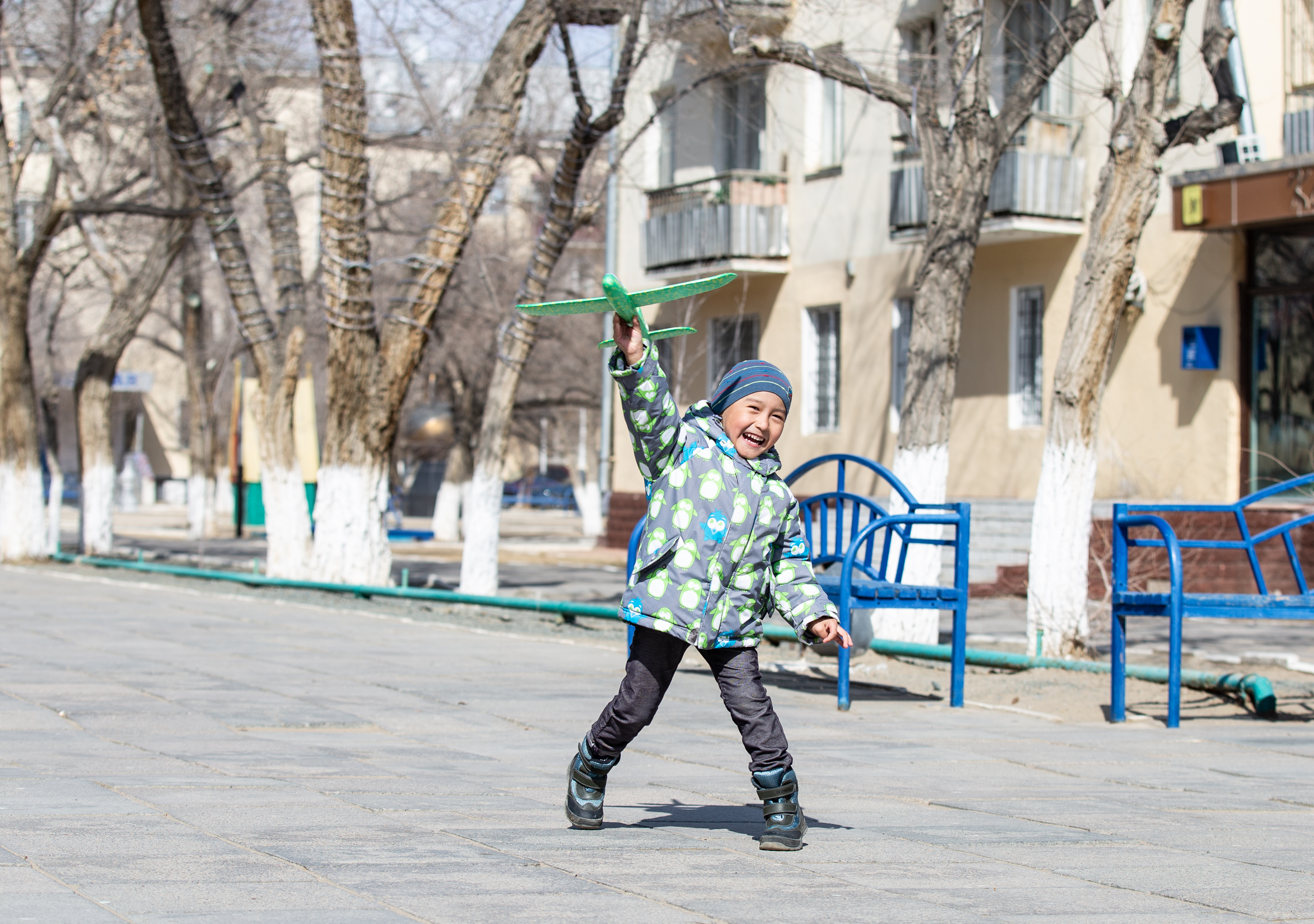 Байқоңыр көшесінде ойнап жүрген бала. 15 наурыз 2019 жыл.