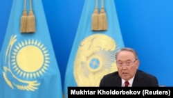 Қазақстан президенті Нұрсұлтан Назарбаевтың халыққа жолдауын жариялап отырған сәті. Ақорда, Астана, 5 қазан 2018 жыл. Фото:Mukhtar Kholdorbekov (Reuters)