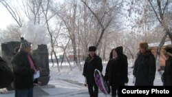 Люди пришли в 20 градусный мороз с цветами, с плакатами с траурными былыми ленточками. Каждый из пришедших нашел в себе смелость и время отдать минуту памяти по погибшим в Жанаозене. Акция продлилась около часа под бдительным присмотром сотрудников полиции и сотрудников КНБ. Никого не задержали".
