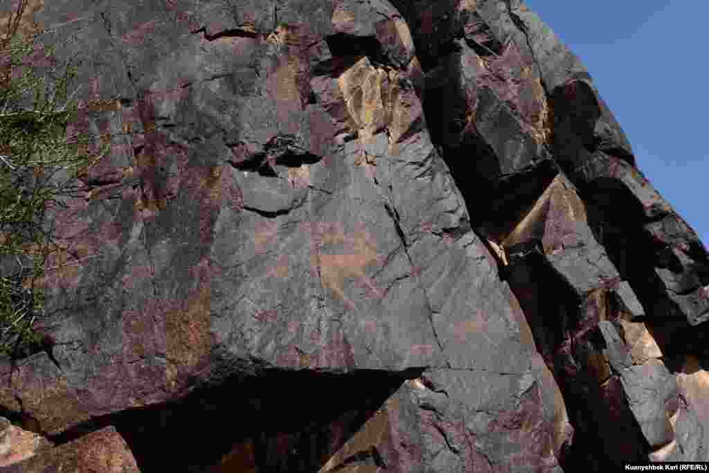 Таңбалы тас сыртындағы шатқалда да петроглифтер жиі ұшырасады.