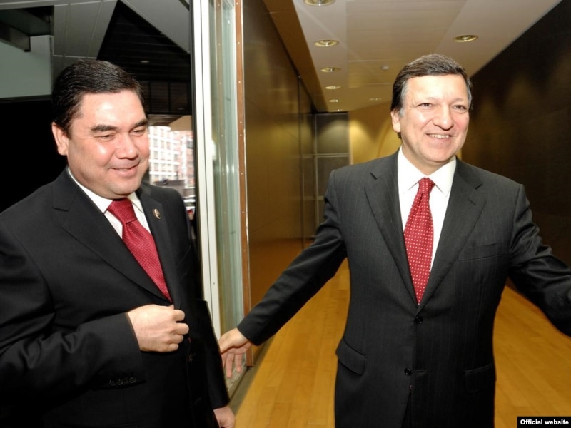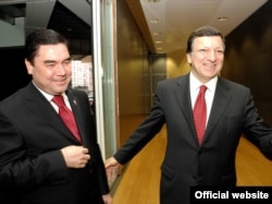 Түркіменстан президенті Гурбангулы Бердімұхамедов (сол жақта) және Еуропа комиссиясы президенті Жозе Мануэль Баррозу.