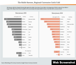 Инфографика: Рубльдің аймақтық валюталарға әсері (ағылшын тілінде):
