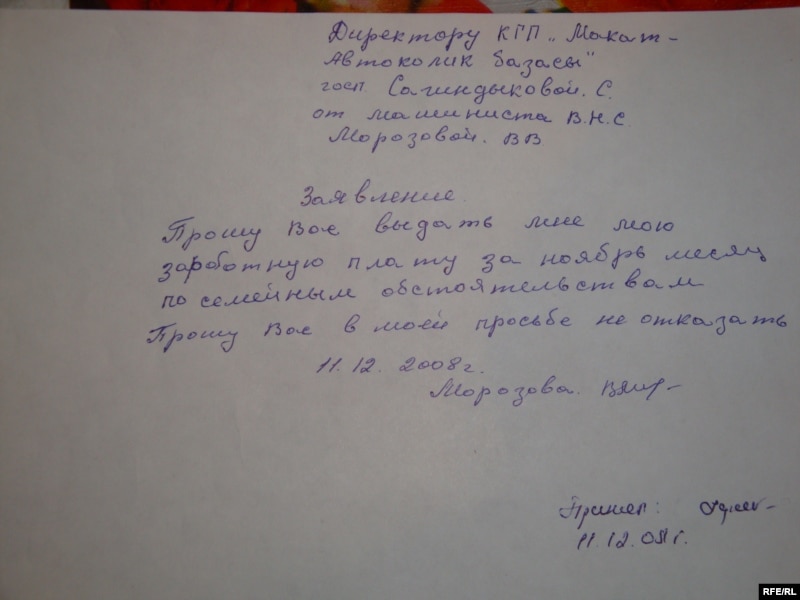 «Мақатавтокөлікбазасы» коммуналдық мемлекеттік мекемесінің байырғы операторы Антонина Карфидова жалақыларын бірнеше жыл бойына үлкен айқай-шумен алып келе жатқанын айтады.