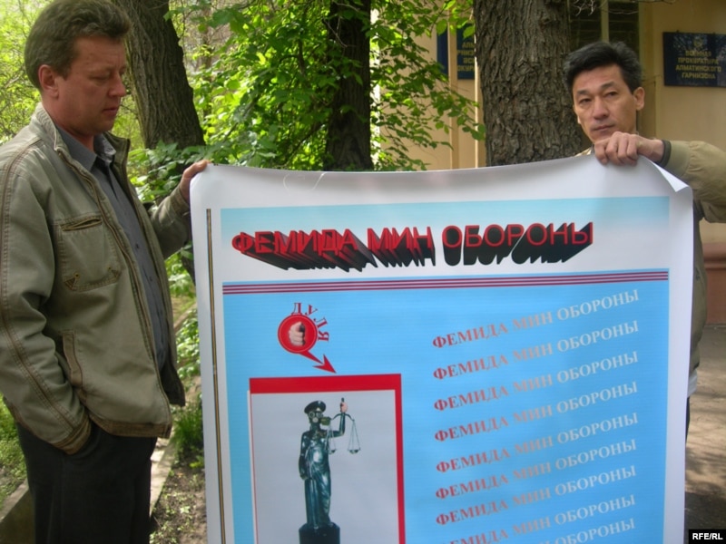 Баспанасыз офицерлер Қорғаныс министрлігі мен сот жүйесіне наразылық танытуда. Алматы, 27 сәуір, 2009 жыл.