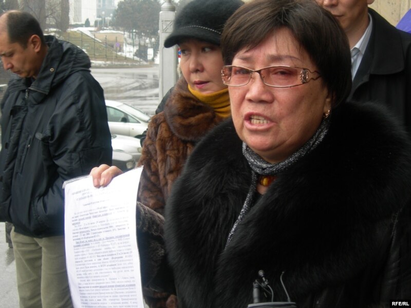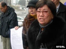 "Қуат" корпорациясының үлескері Гүлжан Әбілбакиева биліктің әрекеттерін сынады. Алматы, 4 наурыз, 2009 жыл.