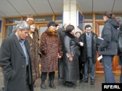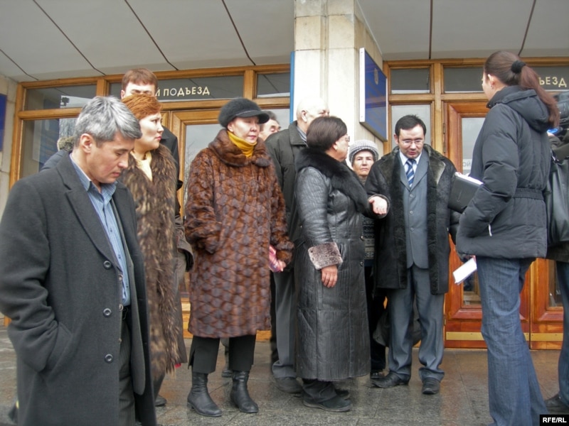 "Қуаттың" алданған үлескерлері мен қоғамдық ұйымдардың, саяси партиялардың өкілдері Алматы қалалық мәслихатының хатшысын күтіп тұр. Алматы, 4 наурыз, 2009 жыл.