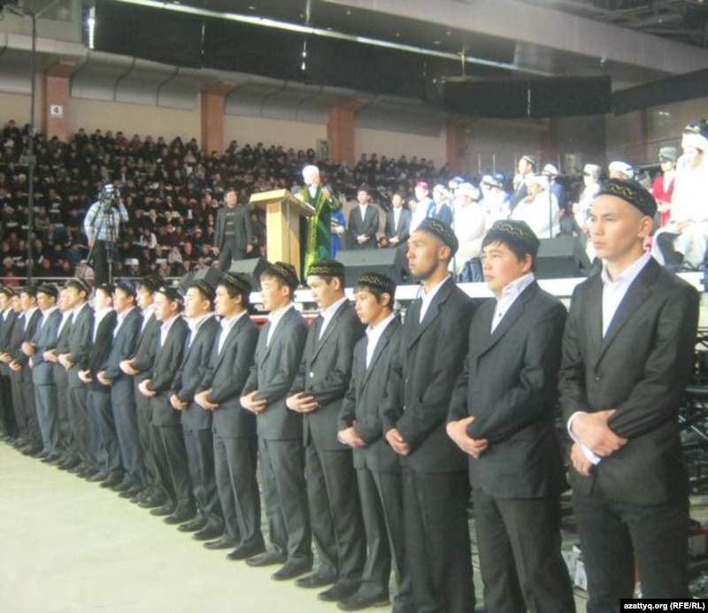 көптеп жиналды. Мінбеге жақындау маңда кешегі коммунистік заманда атеистік көзқарас ұстанып биік мансапта болған, ал бүгінде зейнет жасындағы адамдар да көзге шалынды.