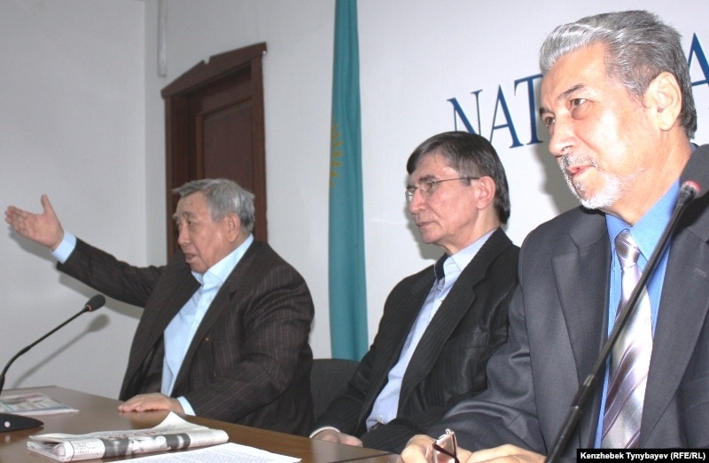 Солдан оңға: Кәрішал Асан-Ата, Жасарал Қуанышәлі және Хасен Қожа-Ахмет. Алматы, 28 желтоқсан 2010 жыл.