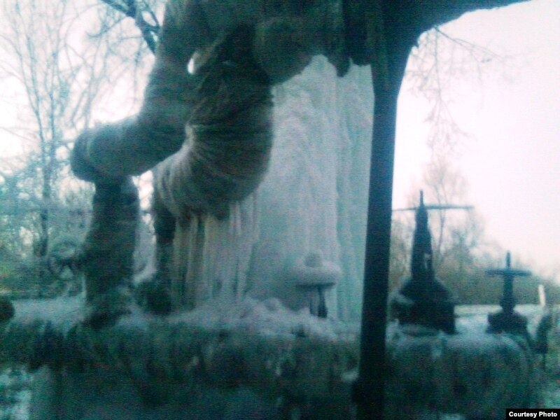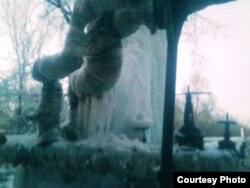 Көшедегі құбырларды мұз басты. Приозерск, 7 қаңтар 2011 жыл.