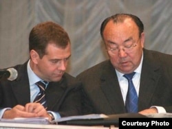 Дмитрий Медведев (Ресейдің премьер-министрі болған кезі) пен Мұртаза Рахимов (Башқұртстан президенті болған кезі). Уфа.