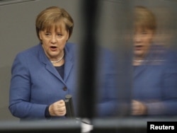 Германия канцлері Ангела Меркель парламентте сөйлеп тұр. Берлин, 17 наурыз 2011 жыл
